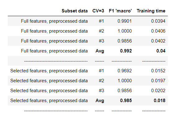 The training time of the models are so small, from 0.4666 seconds to 2.5990 seconds.