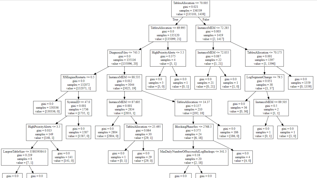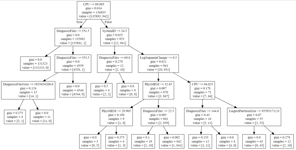 As can be seen form the trees below, each anomaly is caused by different reasons in the system such as CPU usage, memory usage, memory allocation, system backup, system restart, etc.