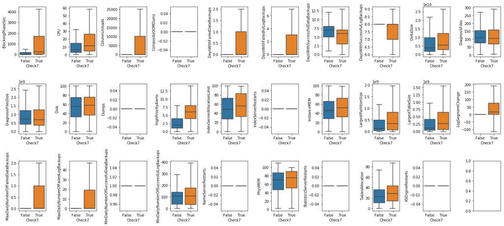 - For Check7: LogSegmentChange, MaxDailyNumberOfFailedDataBackups, MaxDailyNumberOfFailedLogBackups are good features to classify the classes.