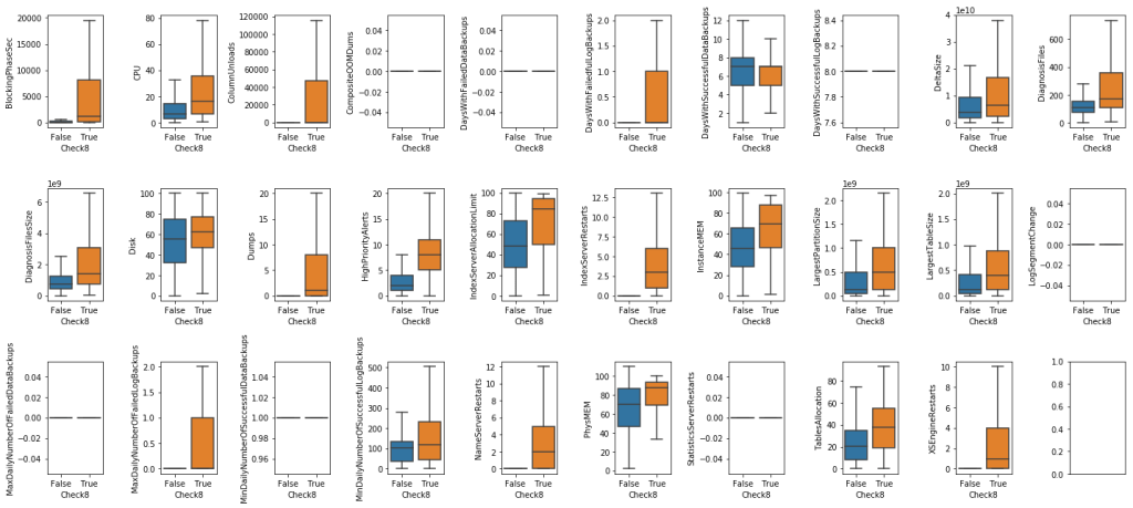 - For Check8: NameServerRestarts and XSEngineRestarts maybe the good features for classification.